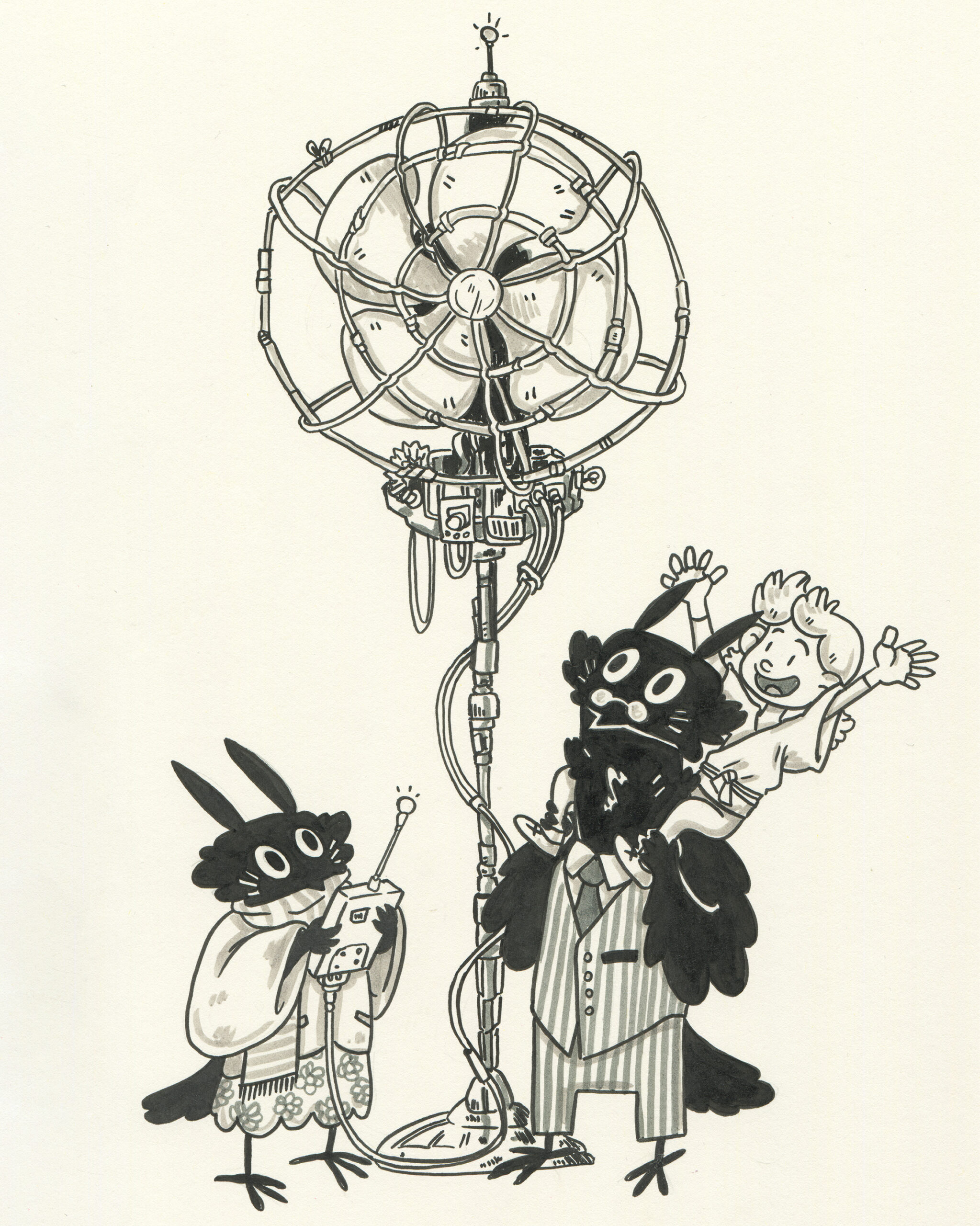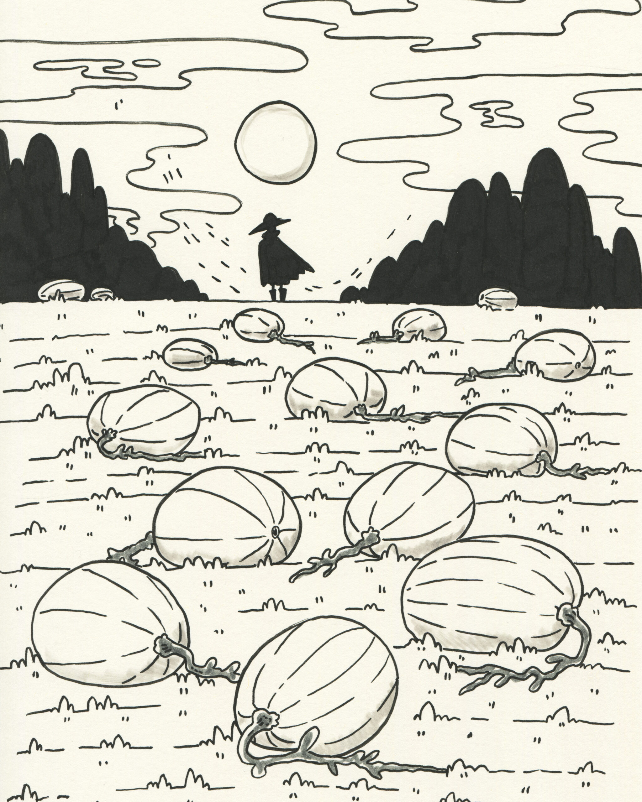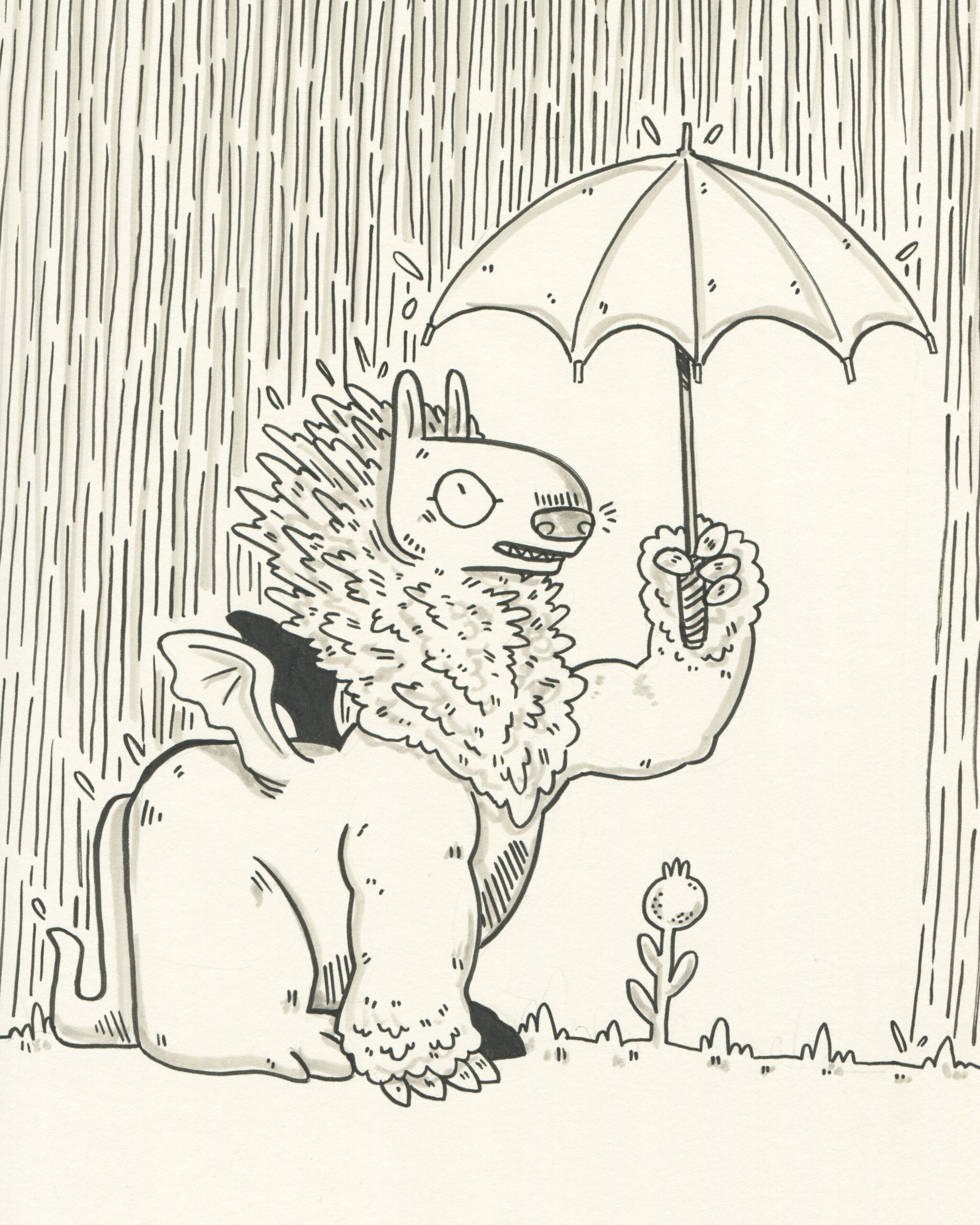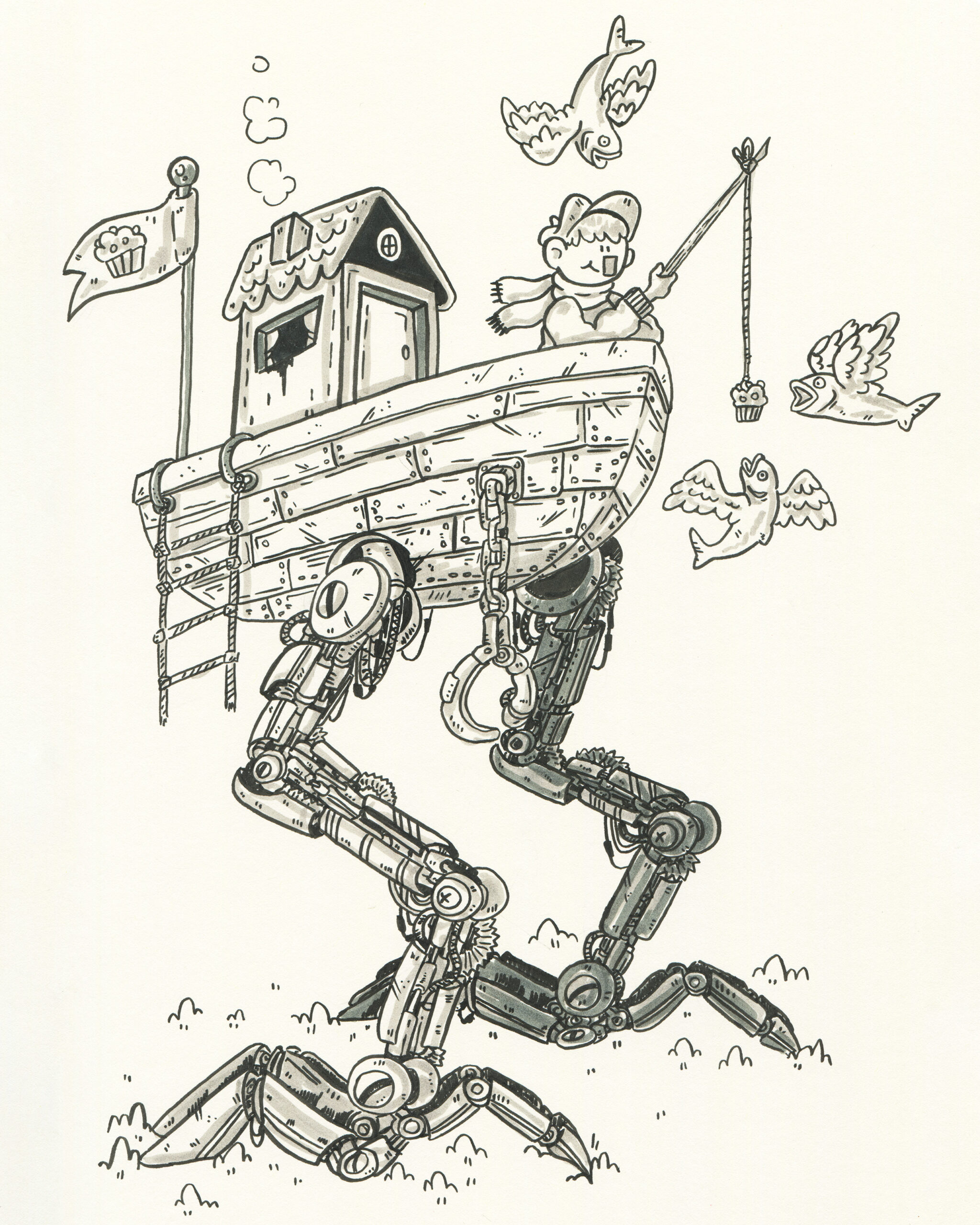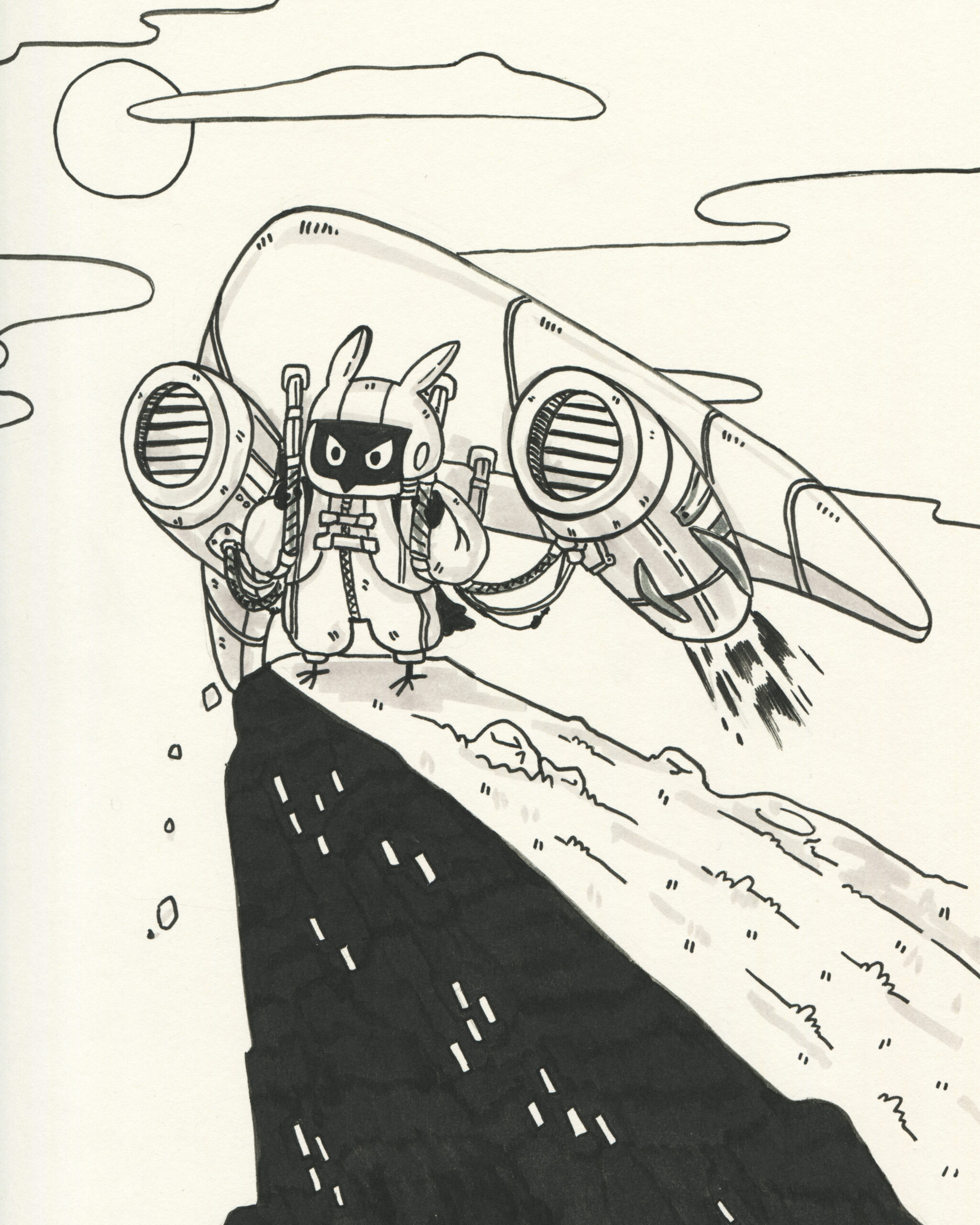 To be fair, I got a head start. Subscribers to the mailing list receive the prompts in advance, so I took the opportunity to plan accordingly. I spent time sketching rough concepts and incorporating some fun characters I had designed earlier. My focus was on visual storytelling rather than inking techniques. To simplify the process, I used black markers instead of liquid ink for almost all my drawings.