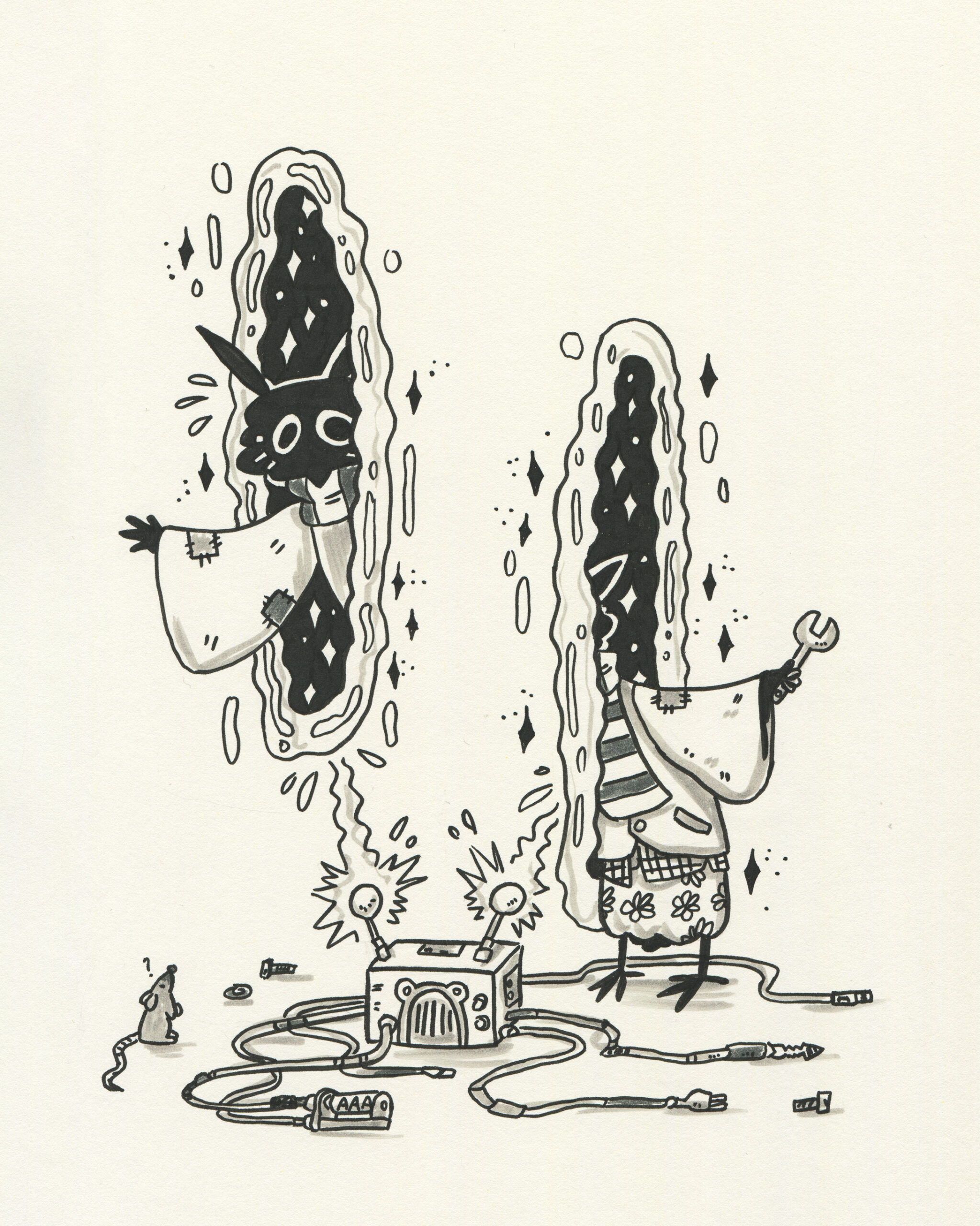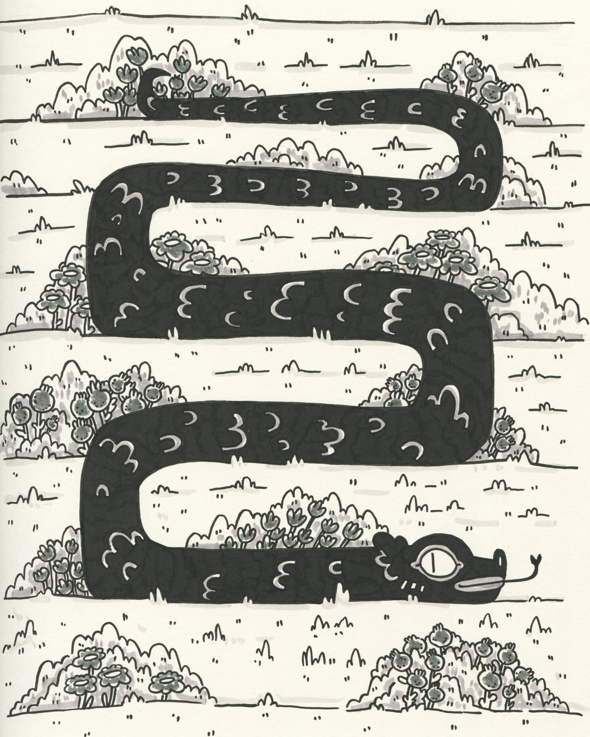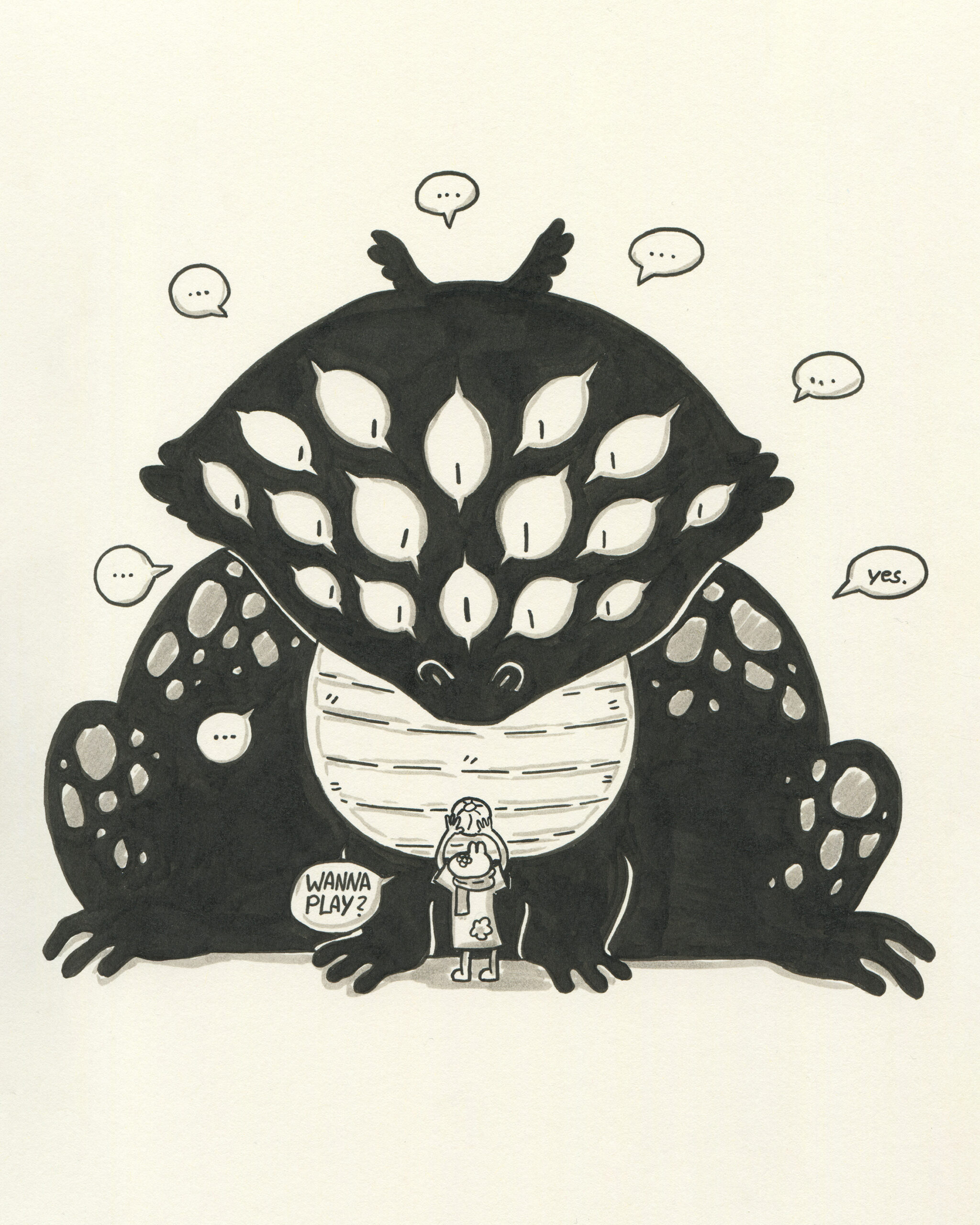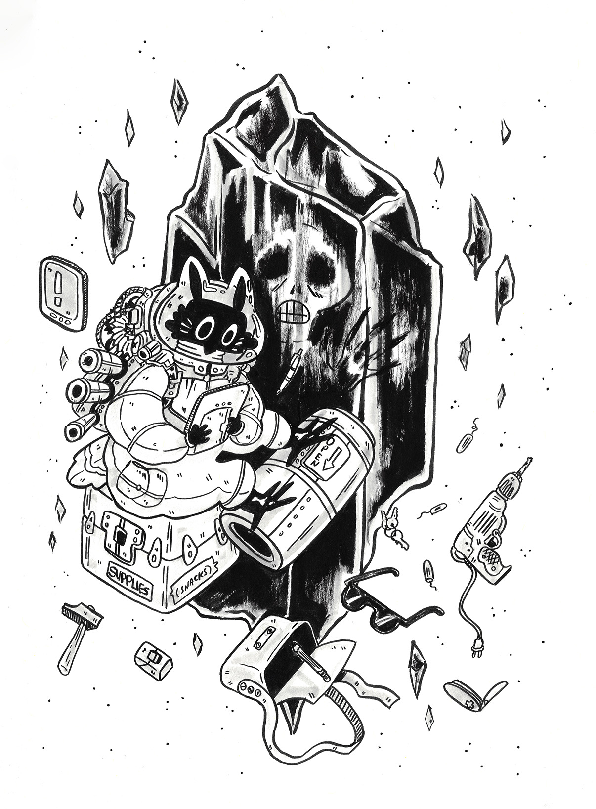 To be fair, I got a head start. Subscribers to the mailing list receive the prompts in advance, so I took the opportunity to plan accordingly. I spent time sketching rough concepts and incorporating some fun characters I had designed earlier. My focus was on visual storytelling rather than inking techniques. To simplify the process, I used black markers instead of liquid ink for almost all my drawings.