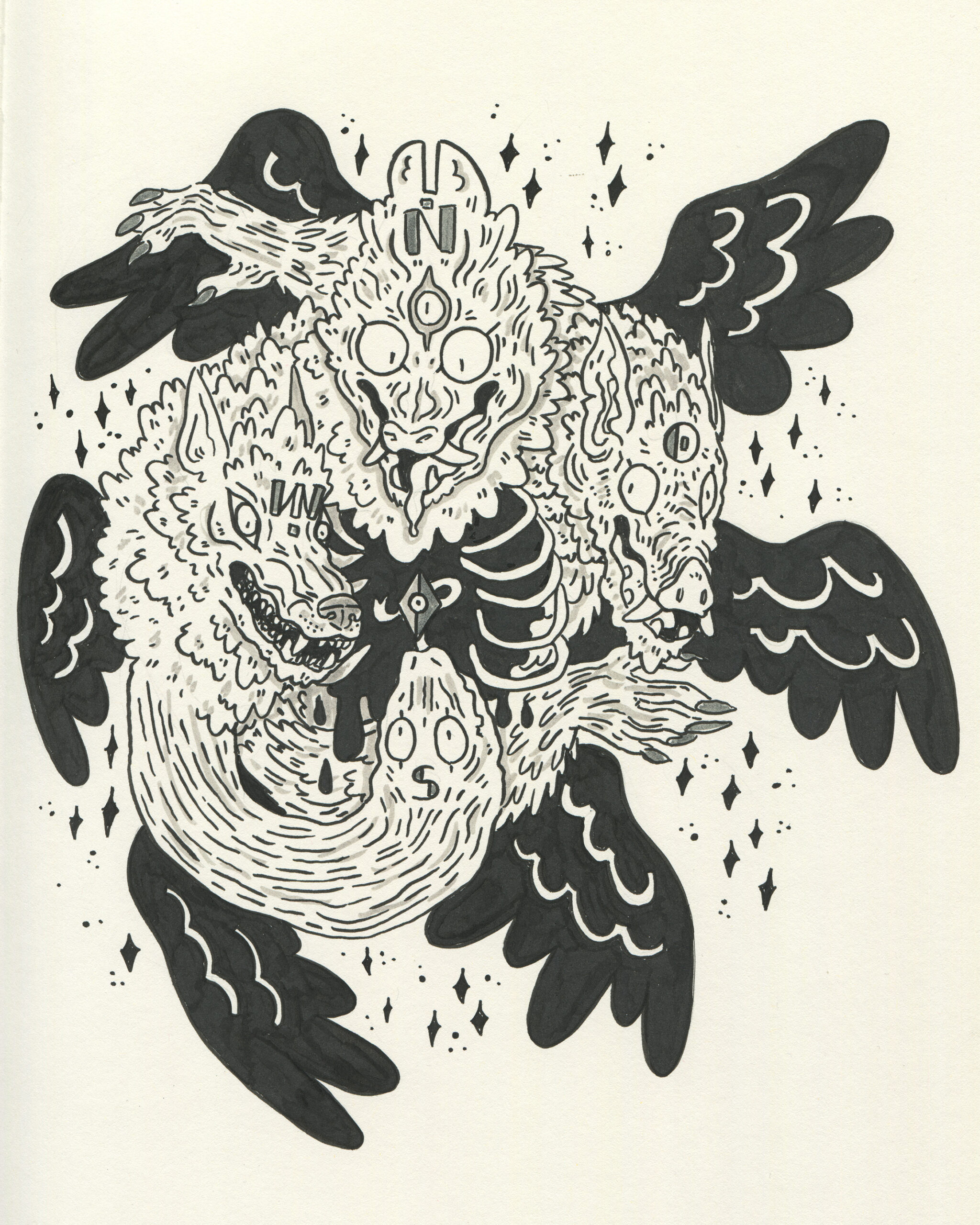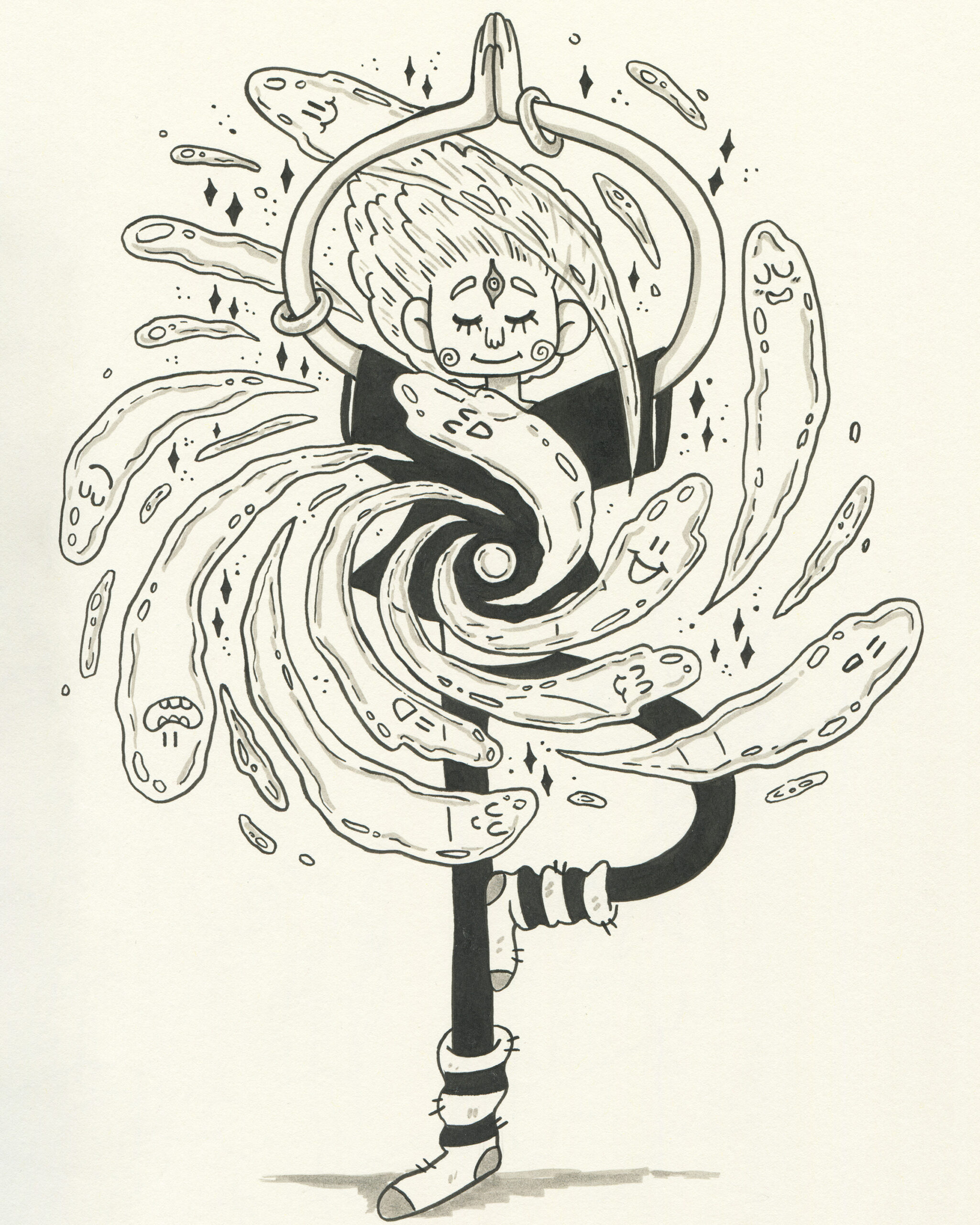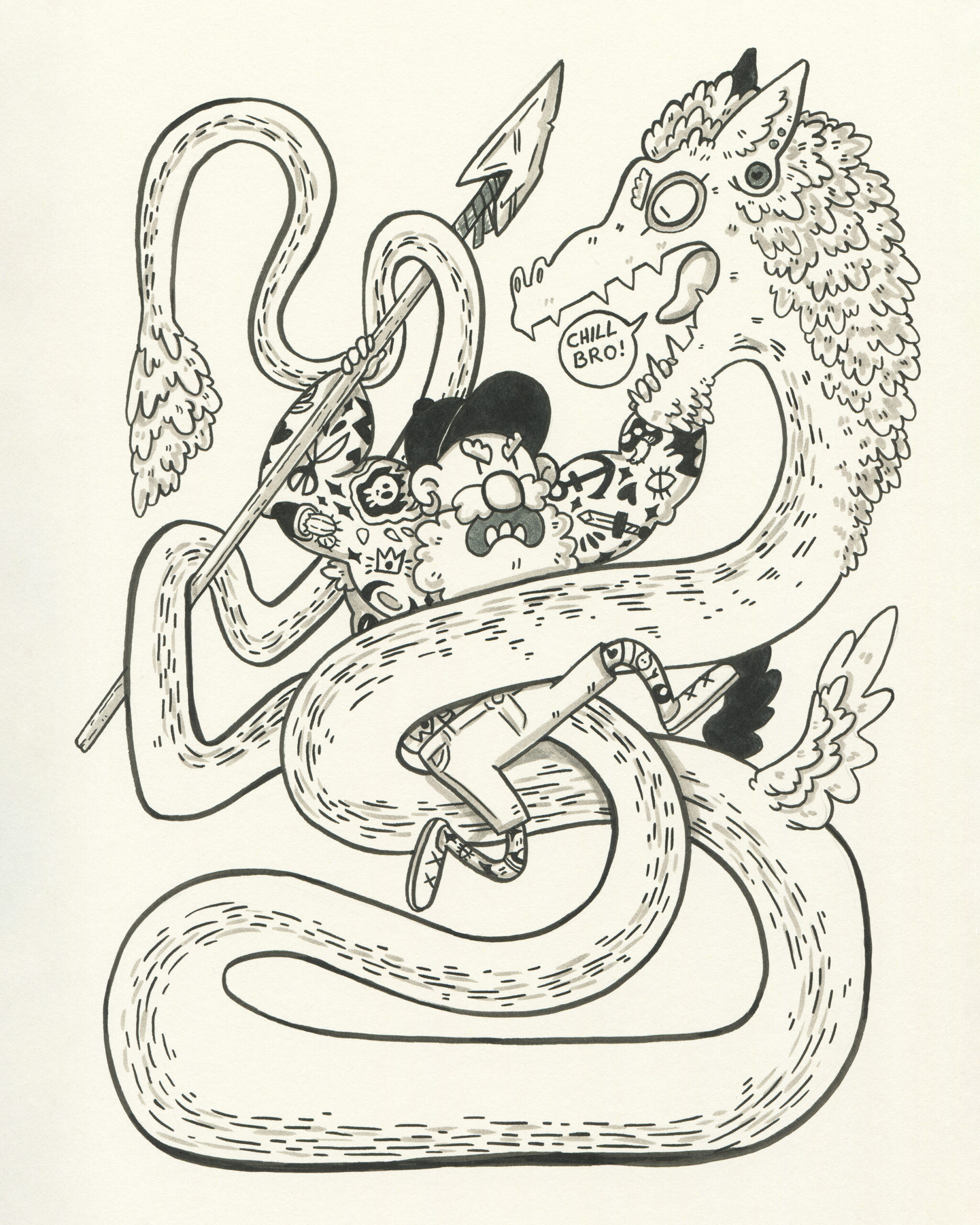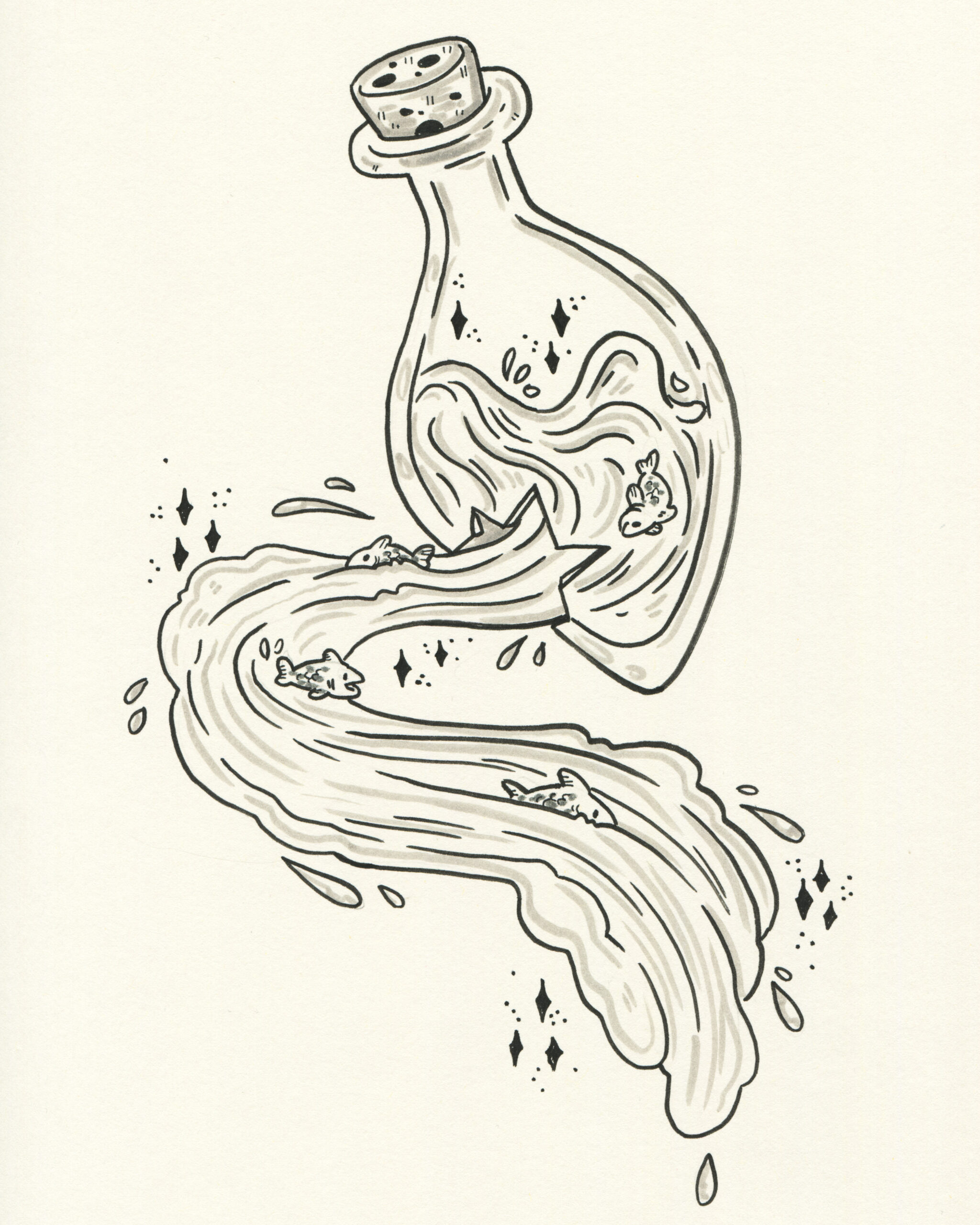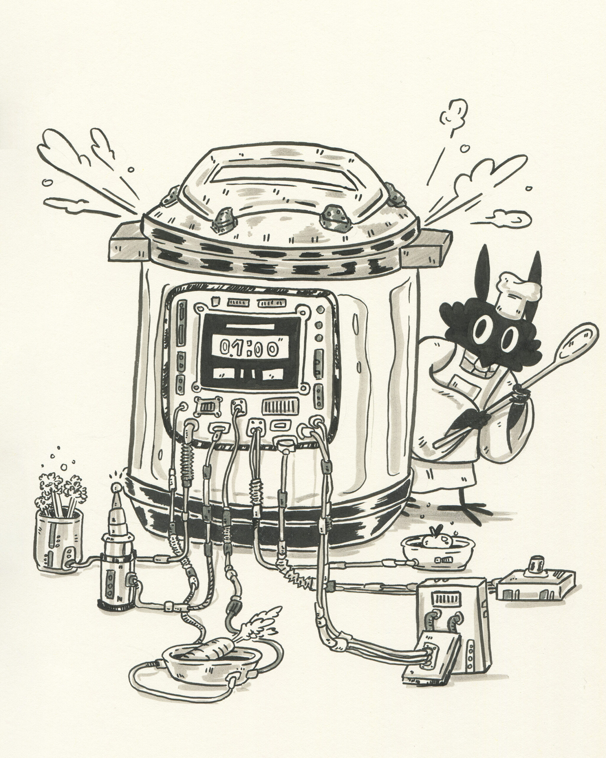 To be fair, I got a head start. Subscribers to the mailing list receive the prompts in advance, so I took the opportunity to plan accordingly. I spent time sketching rough concepts and incorporating some fun characters I had designed earlier. My focus was on visual storytelling rather than inking techniques. To simplify the process, I used black markers instead of liquid ink for almost all my drawings.